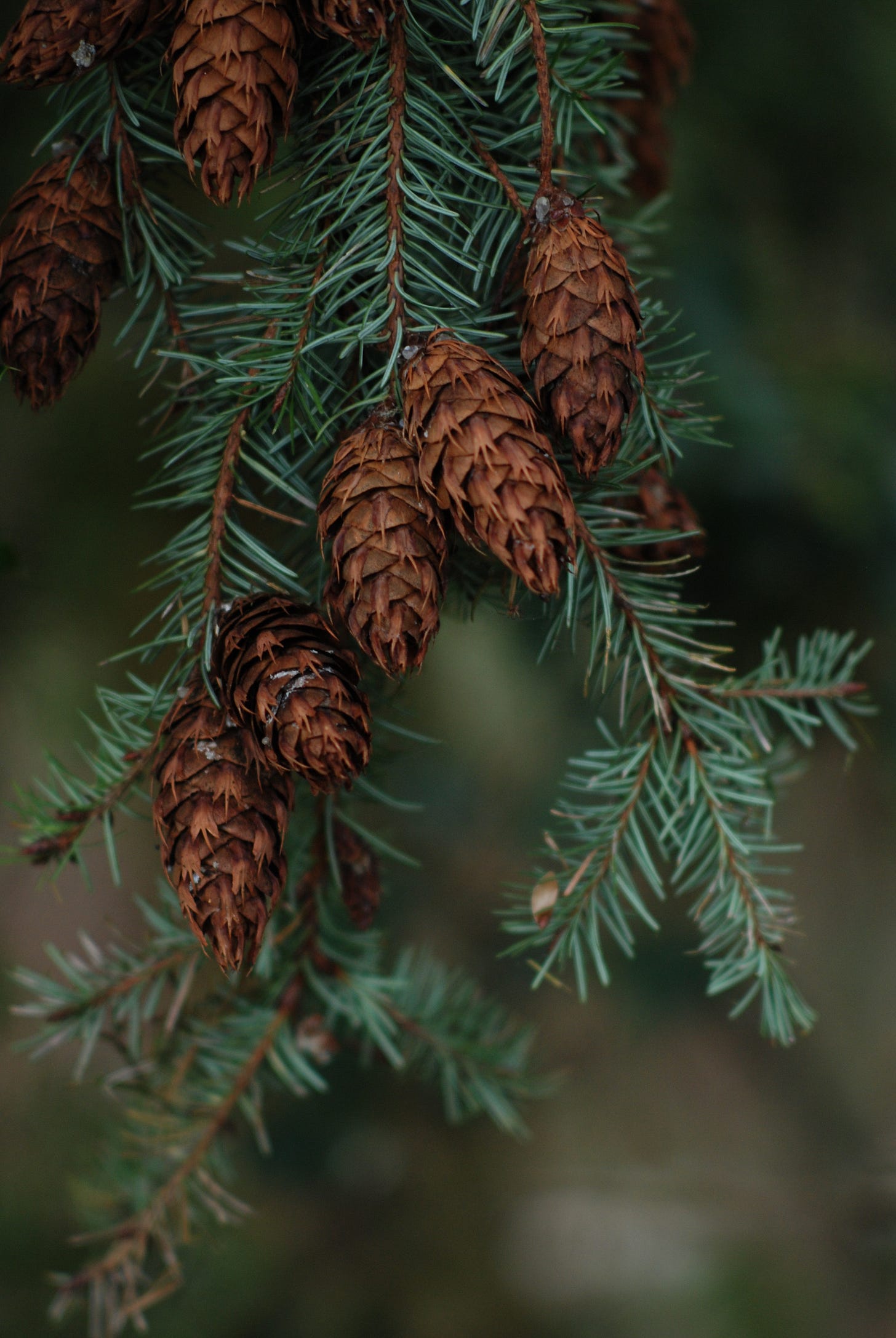 -Costco for squirrels: a plethora of sticky, meaty cones on a Douglas fir branch.