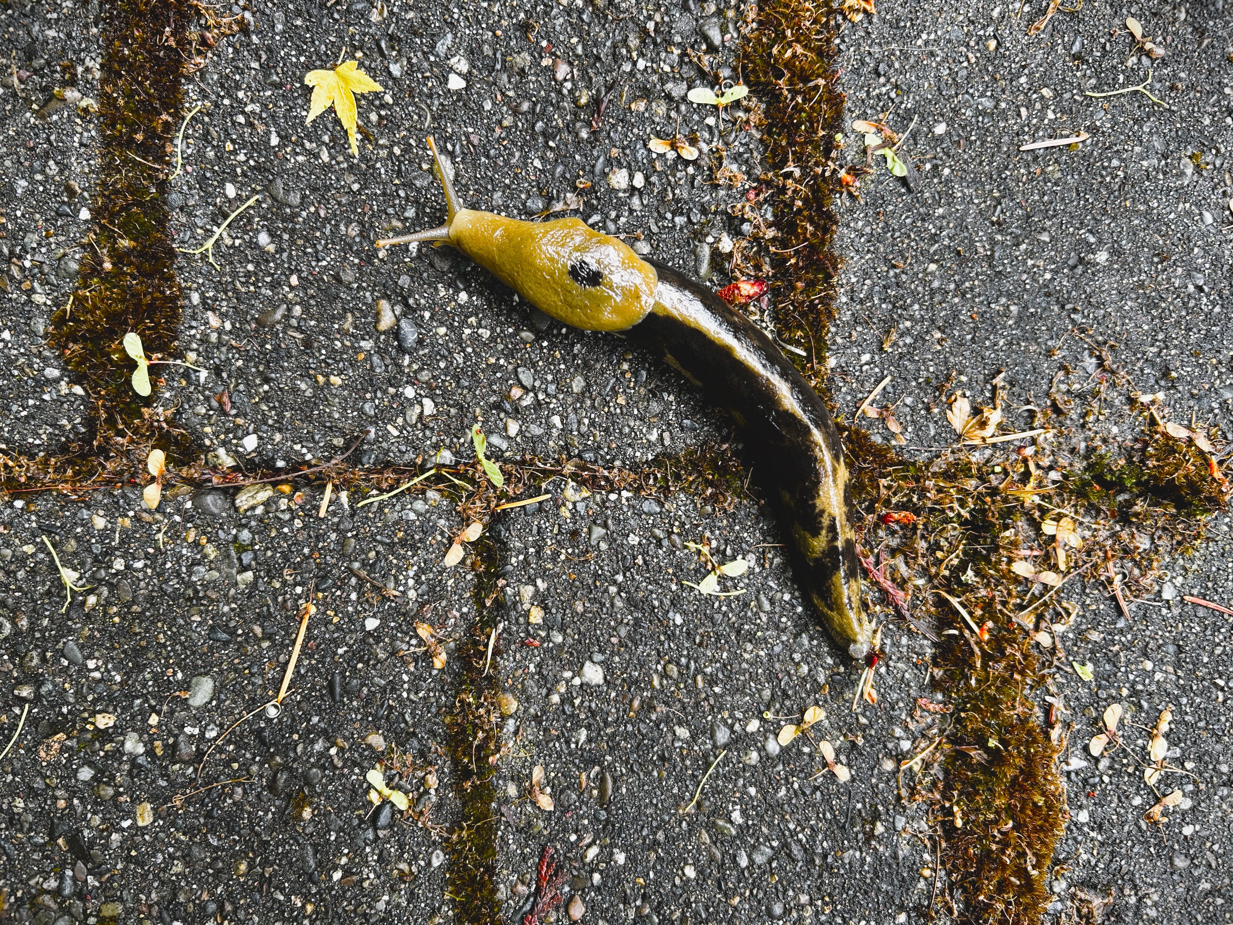 The green is almost overwhelming right now; every view awash in an electric, lit-from-within pallet of greens, as if there were tiny fires of creation burning inside each leaf, needle and bulb. The relentless rainfall, even though gentle, has added an extra shine similar to a Velvia-printed photograph on high gloss paper. There is so much green my eyes see a leafy hue when I look at things that aren’t remotely green. It reminds me of what happens to your vision in Utah, when after three days everything you look at is frescoed in a pinkish-red blush.