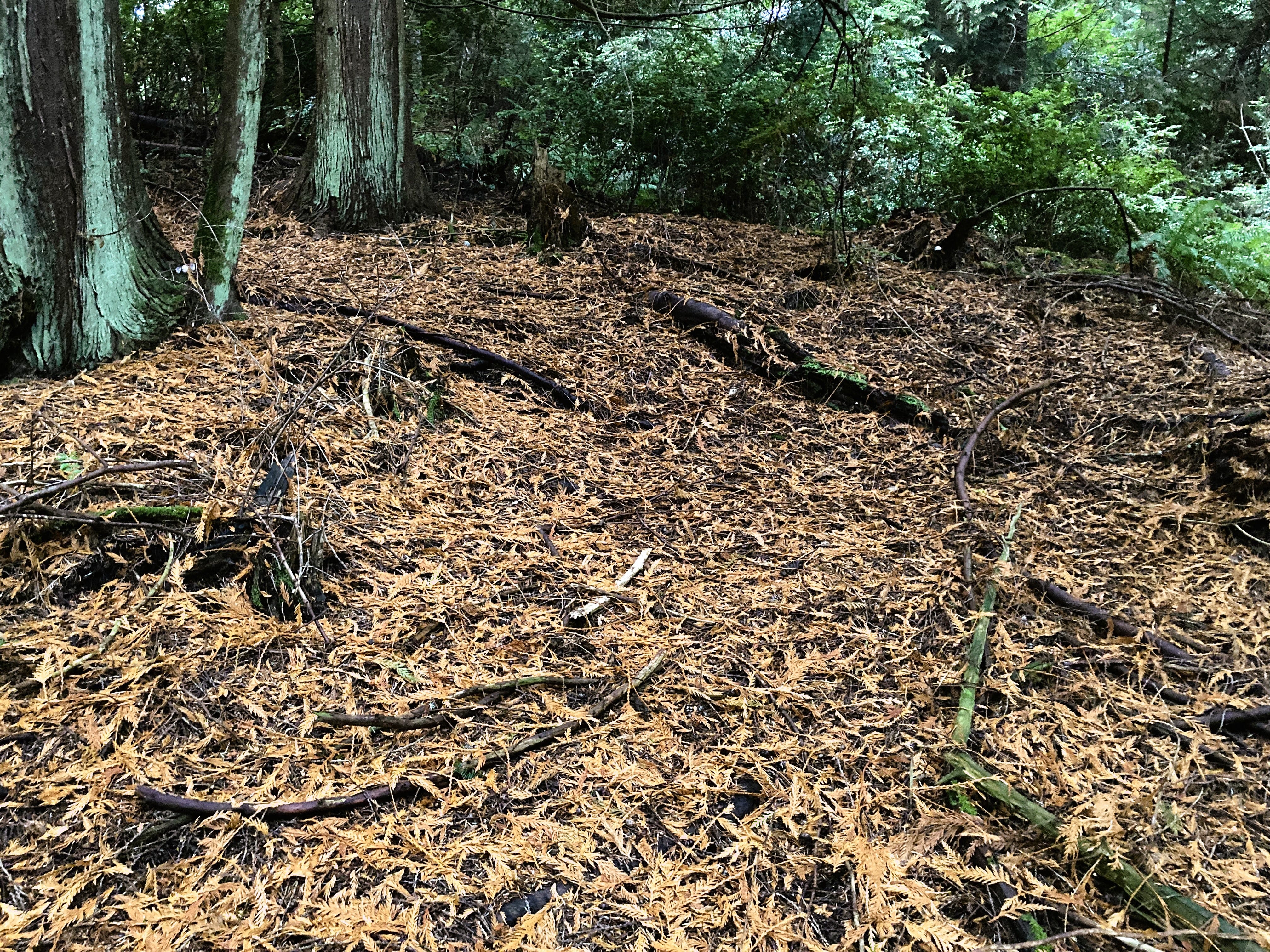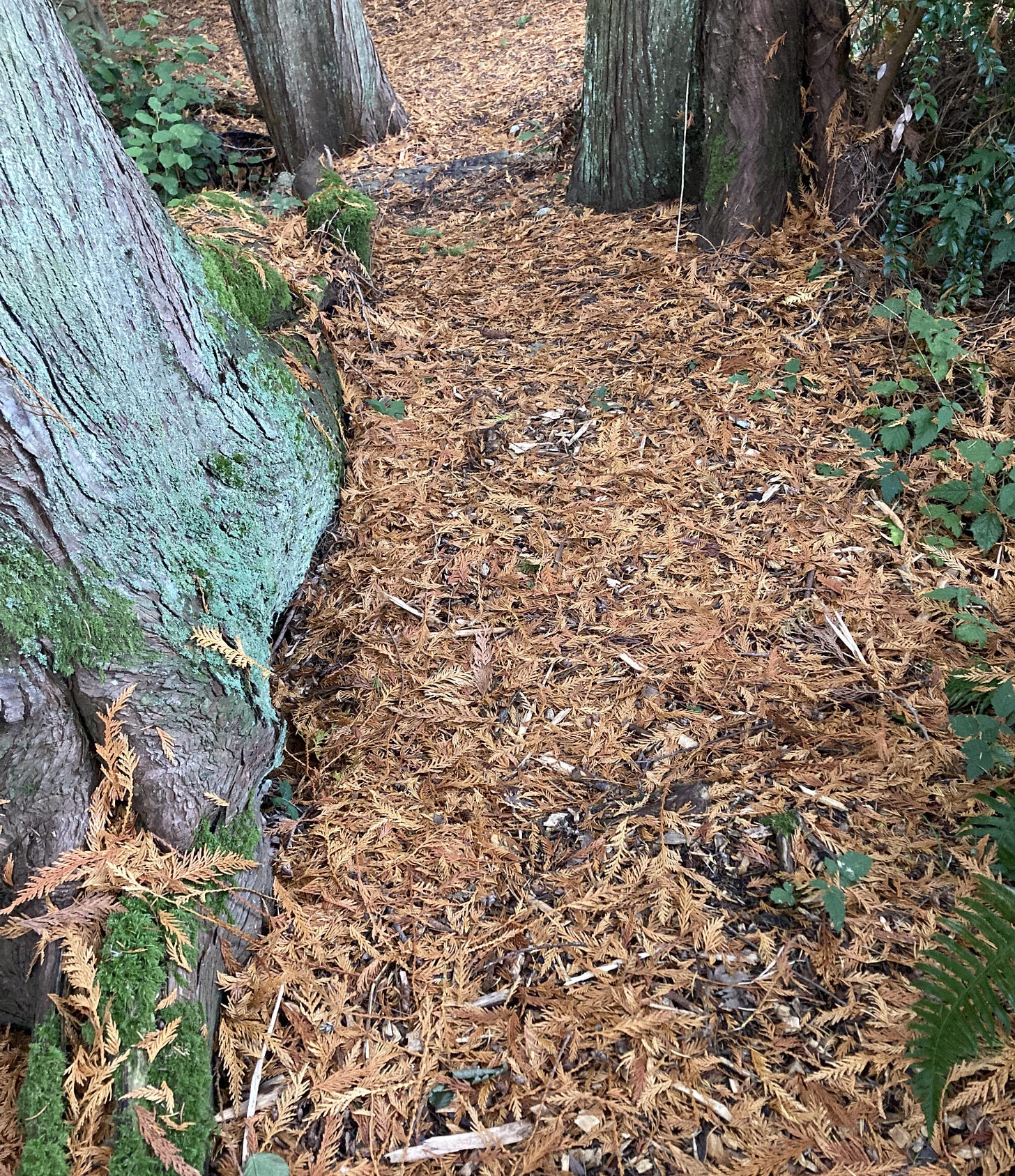In my post unveiling micro-seasons One, Two and Three, I referenced the cedar flagging which takes place in the fall. This event is often mistaken for disease of a tree, but is actually a natural and healthy process whereby the conifers prepare to release a portion of their inner needles to allow next year’s growth to prevail. Lucky us, because the contrasting amber & rust needle color amidst the lush green branches of the remaining needles is one of the loveliest signals of autumn. And then the needles drop, and the forest floor glows.