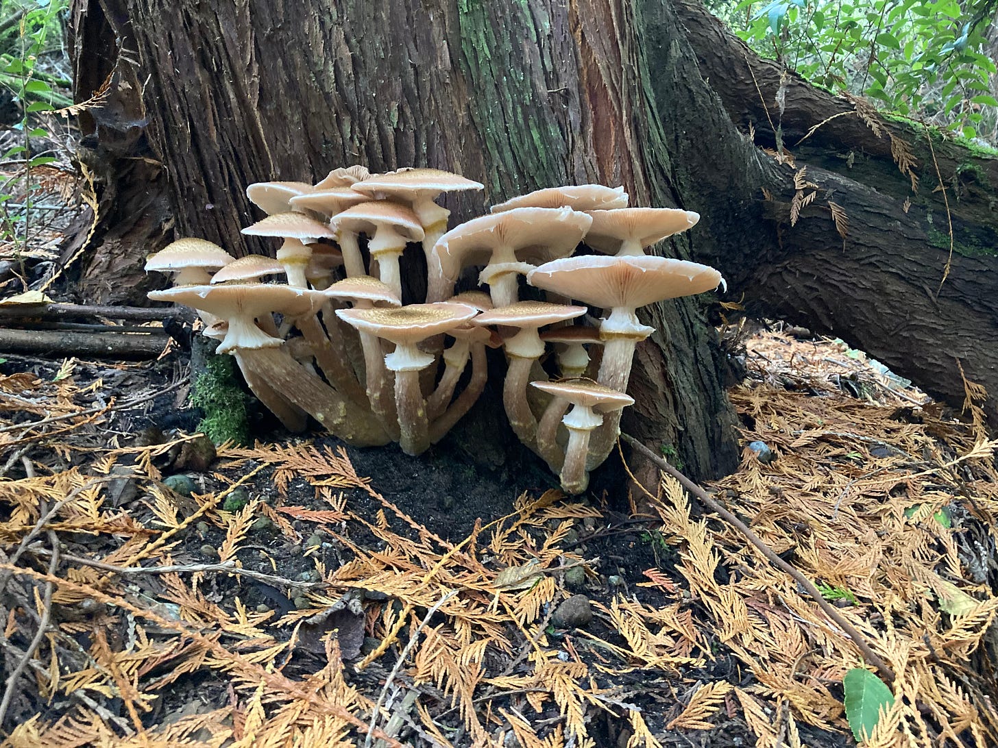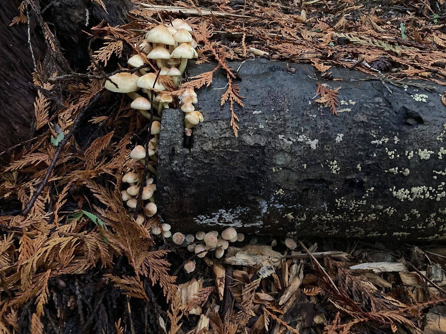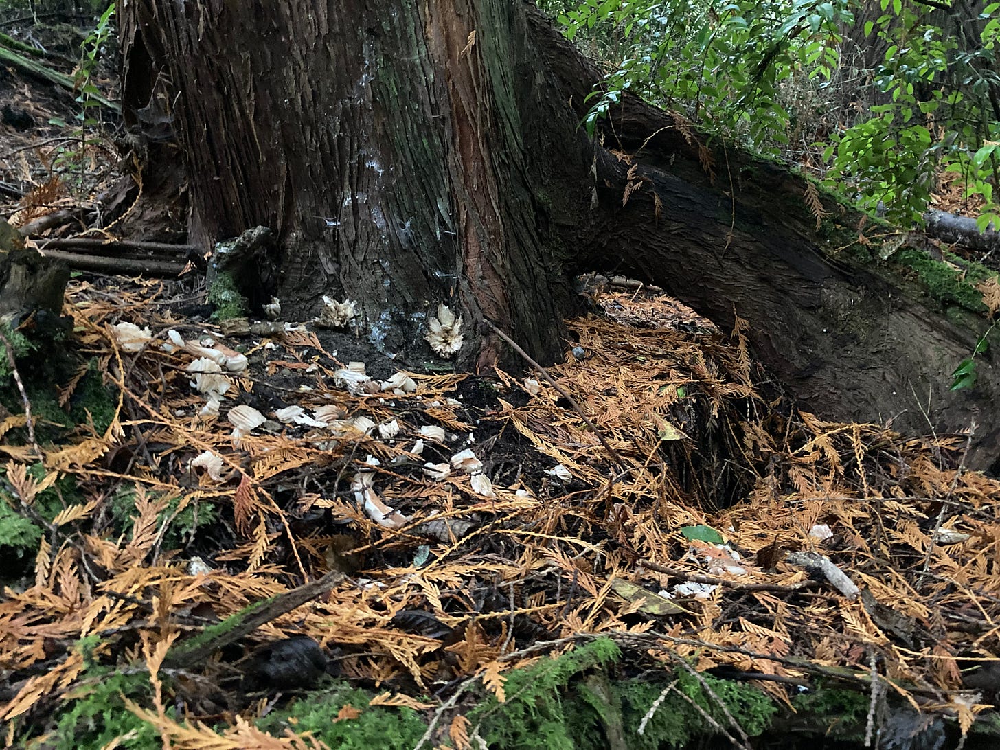 Friday, Oct 20 — a few sets of these parasols arrived at the base of a Western redcedar