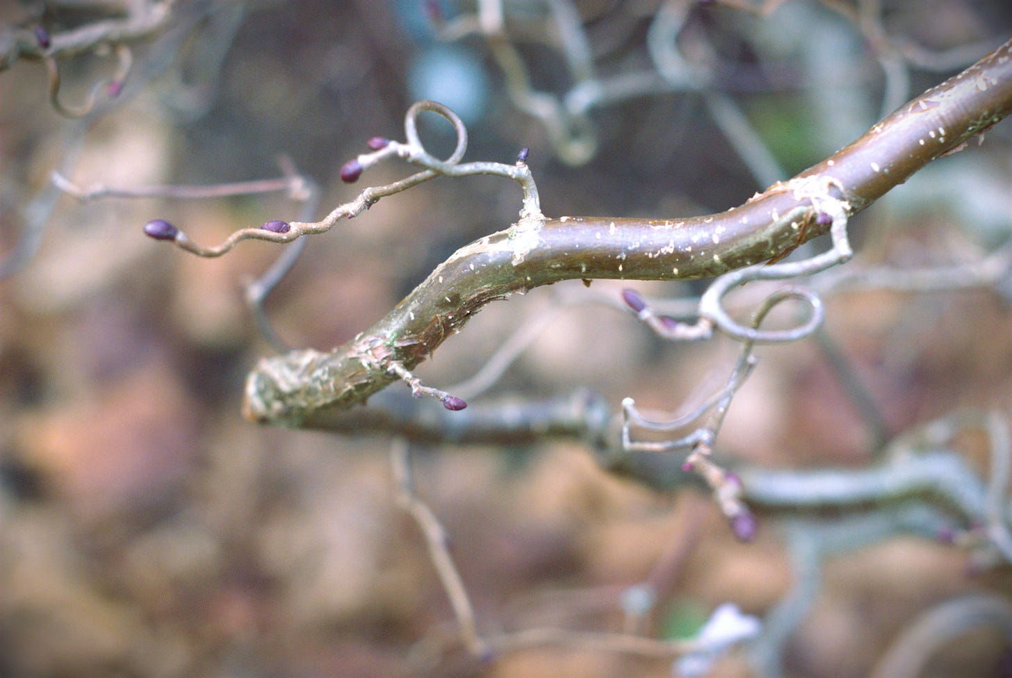 In honor of dragons, I will be periodically highlighting one of my favorite plants in my front yard, the Red Dragon Hazelnut (Corylus avellana.) This shrub is spectacular all year long. Right now, its twisting branch structure is on full display, with the new purple leaf buds just starting to show.