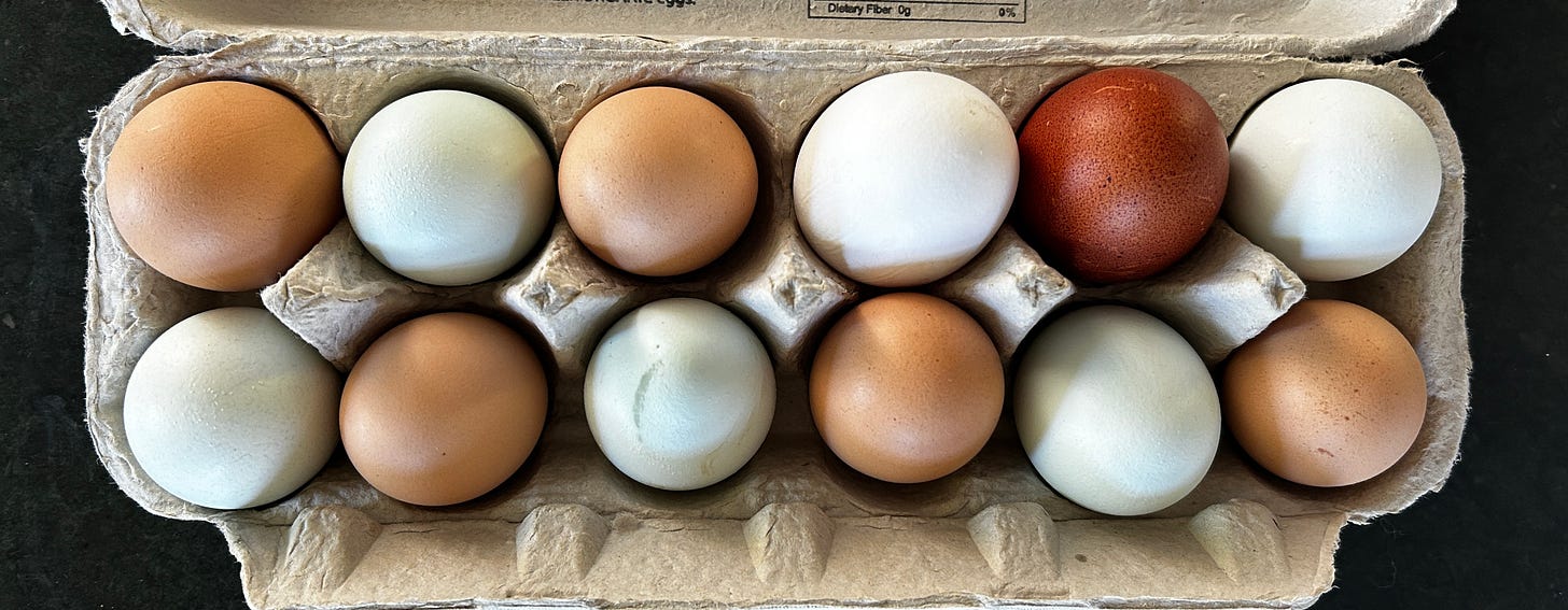 I opened the carton and literally gasped at the display before me. How old was I when I discovered that chicken eggs are not always white? Too old.